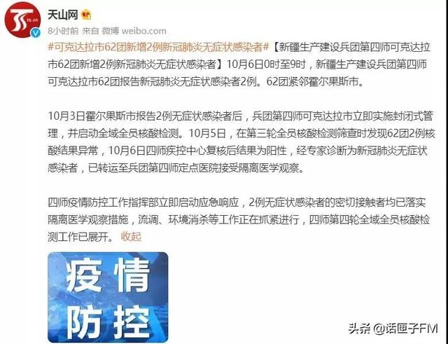 兵团第四师疫情最新通报:经过全体人员的共同努力,当前疫情已得到有效控制。各项防疫措施正在有序实施,疫苗接种工作也在稳步推进。请广大市民保持警惕,遵守防疫规定,共同维护健康安全。如有任何疑问或不适,请及时联系当地医疗机构。