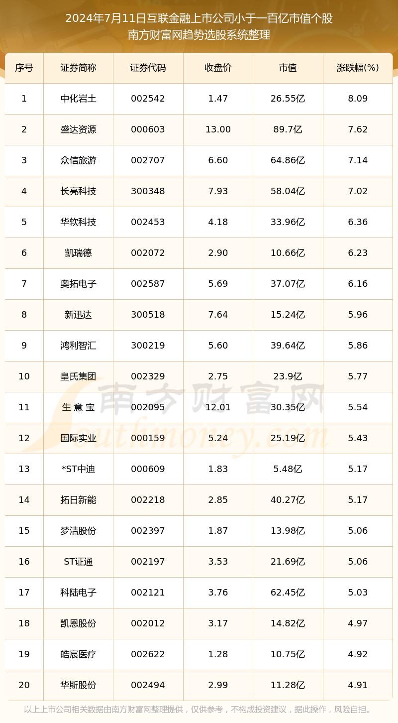 互联网金融上市公司一览表