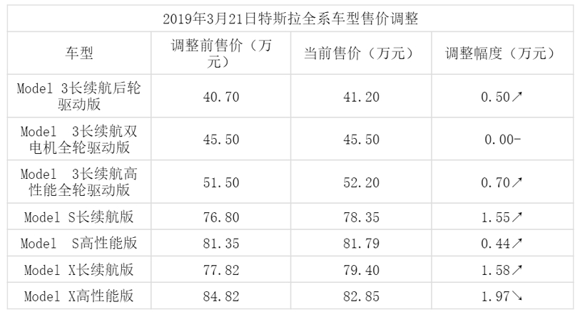特斯拉车型价格概览