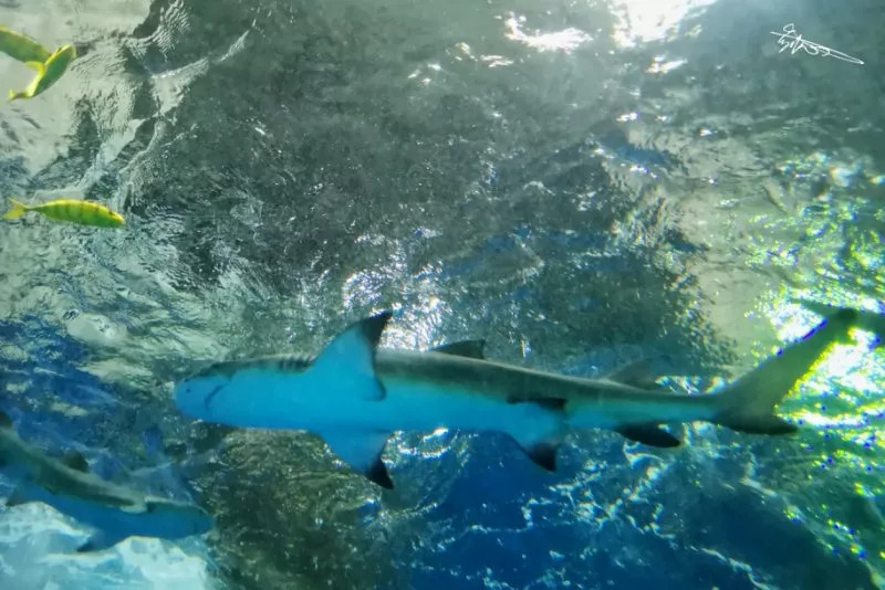 踏入鲨鱼馆,你会被这里的环境所吸引,整个场馆沉浸在海洋元素之中,蓝色的灯光、栩栩如生的海洋生物装饰,以及宛若海浪起伏的声音,每一个细节都让人仿佛沉浸在大海的怀抱中。