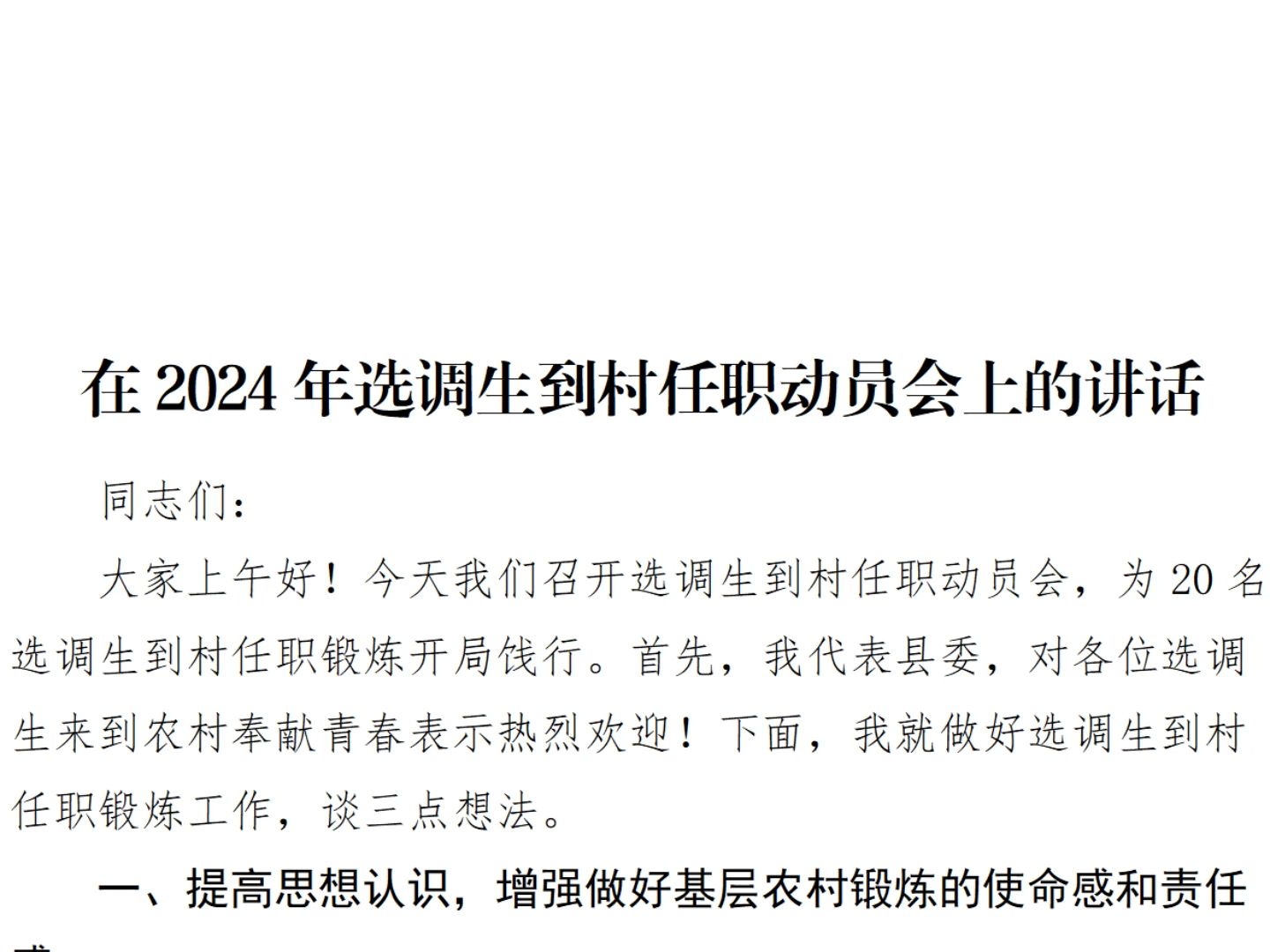 摘要:本文介绍了最新村主任演讲稿的编写步骤指南,包括了解演讲背景、明确演讲目的、梳理演讲内容、注重语言表达等方面。强调了演讲稿的重要性,指出村主任作为村级领导的核心,需要通过演讲来传达思想、凝聚人心、推动工作。本文旨在为村主任撰写演讲稿提供参考,帮助他们在未来的工作中更好地发挥领导作用。最新村主任演讲稿需结合实际情况,展现新时代乡村发展的愿景和信心。