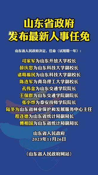 山东省政府近期进行了一系列的人事任免,涉及多个重要岗位与部门,这些人事变动反映了山东省政府对于未来发展的战略布局,以及对优秀人才的重视与提拔。
