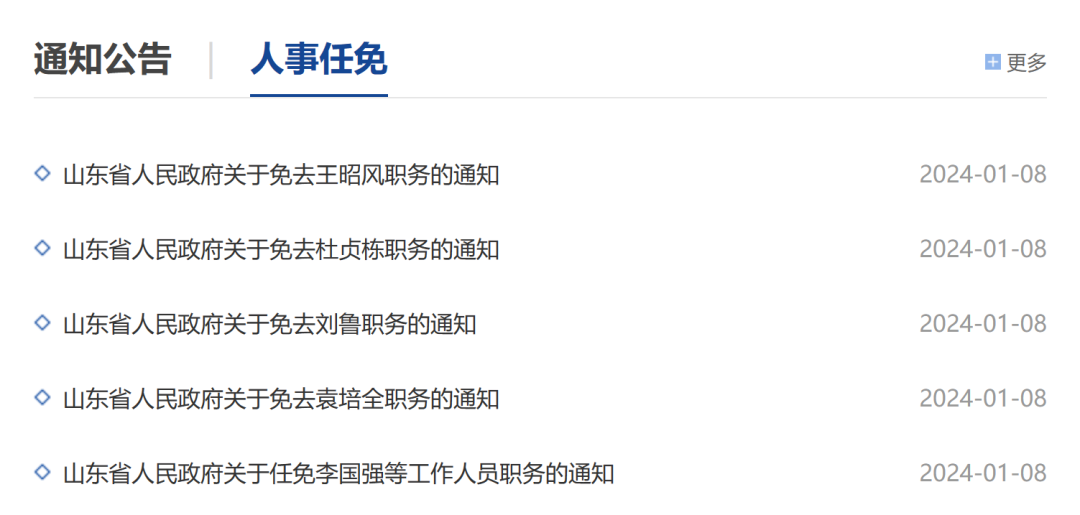🔍山东省政府的人事任命