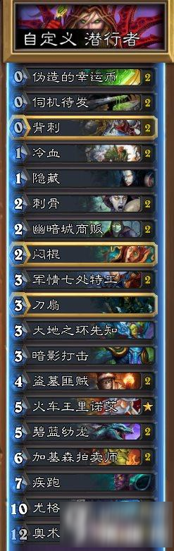 奇迹贼卡组主要由潜行者职业卡牌构成,包括一系列高效的法术、实用的随从以及强大的核心卡牌,暗影步、剧毒刃和消失等是构建卡组的重要组成部分。